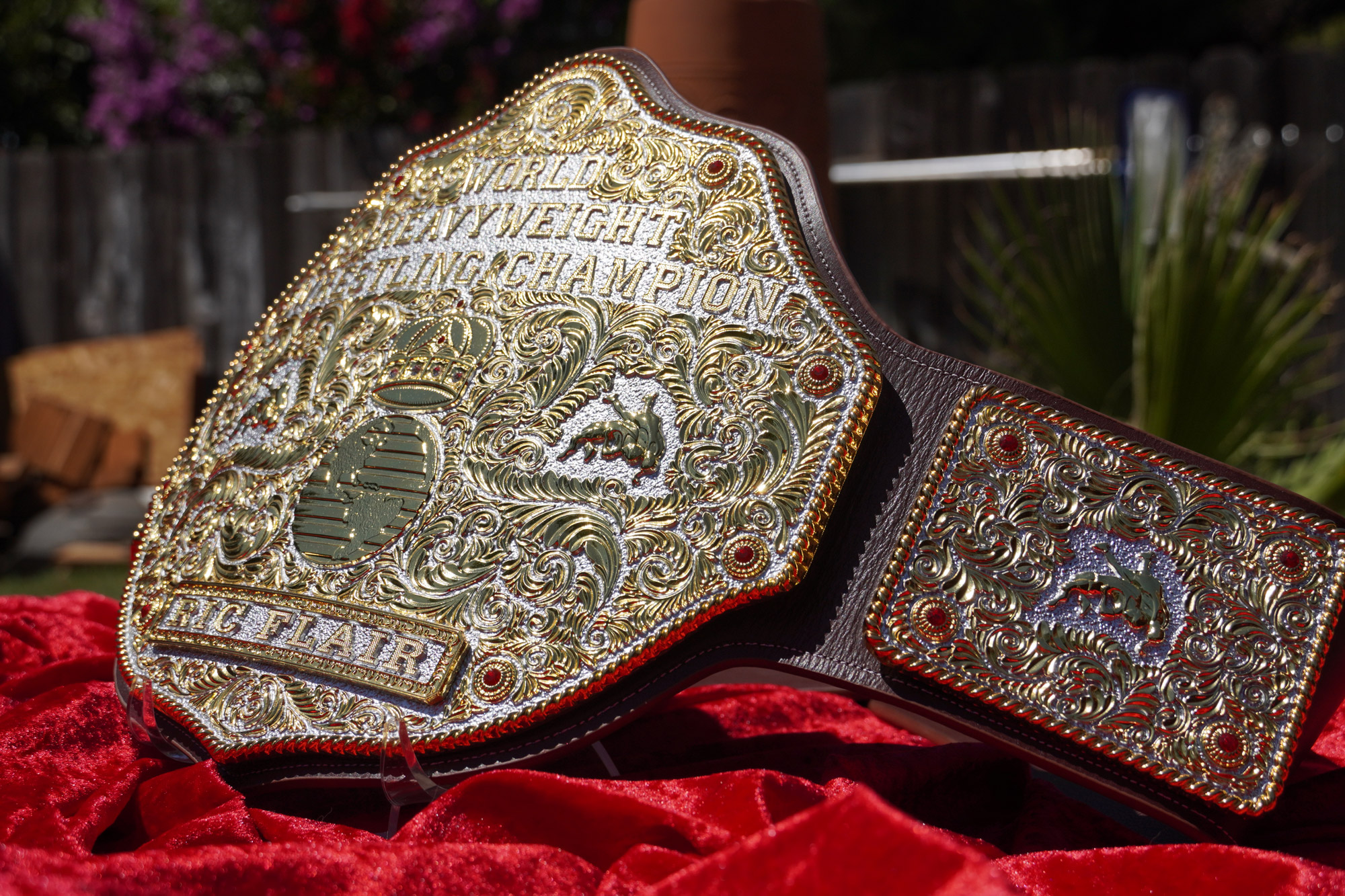 The words WORLD HEAVYWEIGHT WRESTLING CHAMPION are bold with a dotted diamond texturing, same as the words used on the nameplates.