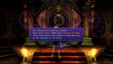 The small room also holds several pedestals. If you found all the hidden items in each temple around Spira, standing in front of these pedestals will cause a glyph to appear. If you followed this guide up until this point, you should have all the hidden items. Light up all the glyphs to lower the shield to the north. Enter the door to the north and speak with the Fayth to receive Anima. You will also get more back story.