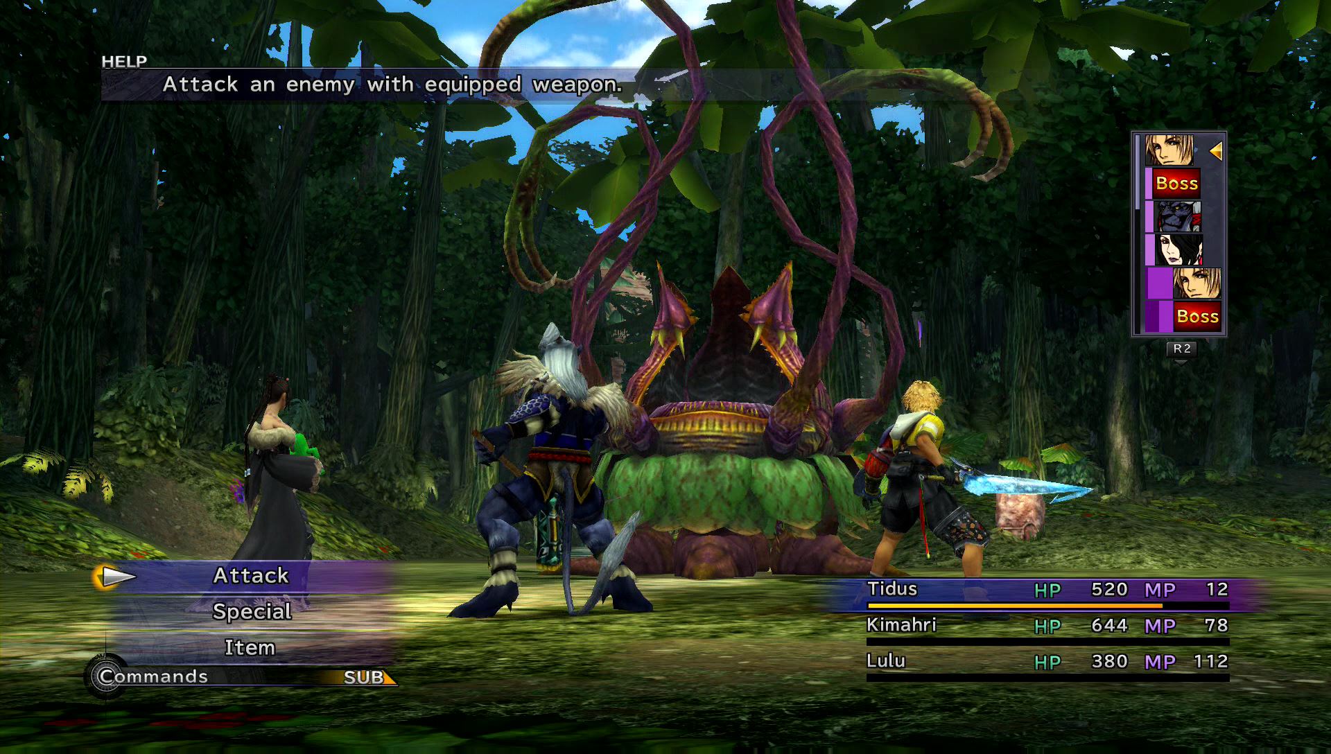 As you can see from the skill list above, Lord Ochu can deal a lot of damage in a variety of ways, and has a special skill to restore its own HP. A single physical attack will cause it to wake up and prevent it from gaining more HP, but it can still gain about 900 HP after a single turn. Use Lulu’s fire spells and Yuna’s Aeon’s fire spells to deal massive damage. If your HP gets low, allow Yuna to cast healing spells or command anyone to use Potions.