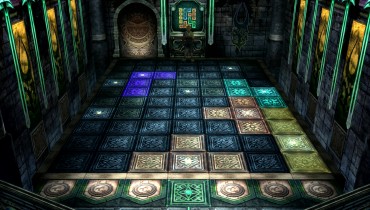 After completing the first puzzle, six pedestals will appear from behind the west and east walls. Only four of the pedestals can be interacted with (press X) and pushed back. Push one at a time to display another puzzle in the next room. Again, you can interact with the diagram on the north wall to see which squares you must step on.