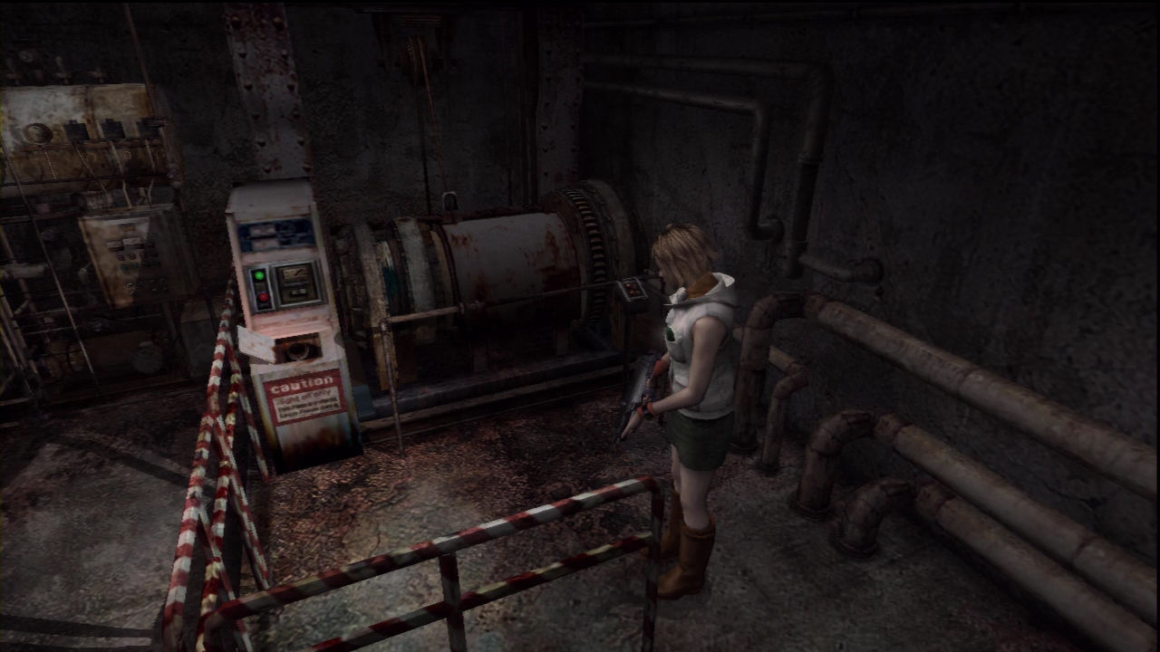 This room houses a large generator. Next to it is a ladder down into a room filled with water. Obviously, you won’t be able to go down into the water, but that’s why we have the Oil-filled Bottle. Use the bottle on the hole in the Generator to fill it up, then use the small keypad to the right. This keypad is a hoist on / off switch. Switch it on to empty the water in the room beneath you.