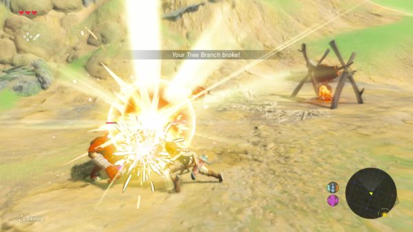 A weapon can also be thrown by holding and releasing the R button. Throwing a weapon will cause quite a bit of damage to both the equipment and anything it hits. All weapons have a set durability, and once they break they will cause critical damage. This is the same damage that occurs when an enemy is struck in the head or eye with a bow and arrow. Critical hits not only cause 2x damage, but they stun an enemy and cause them to drop their weapon.