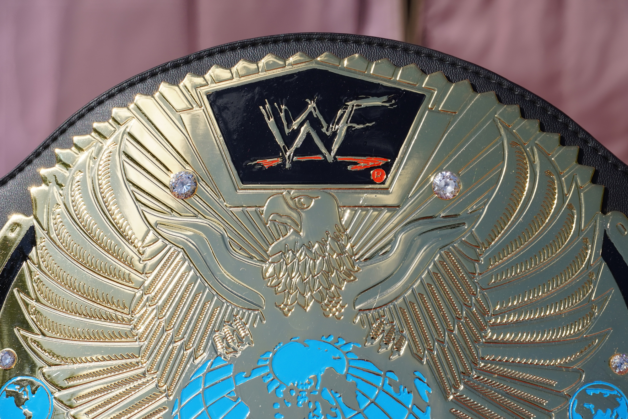 During the late 90s, professional wrestling hit an all-time high. Fighting for the top of the mountain during this “attitude era” was the World Wrestling Federation. In March of 1998, this new WWF Championship belt was unveiled for Stone Cold Steve Austin, though it had the older WWF block logo and was on a blue strap. It was then given a slight redesign with the WWF Attitude logo and placed on a black strap after the Smoking Skull belt was used by Steve Austin. This attitude era big eagle design debuted at WWF Survivor Series 1998 and lasted until December of 2001 when it was unified with the WCW Championship by Chris Jericho. The big eagle was still held by the WWF Undisputed Champion until April of 2002 when a new belt was revealed and given to then-champion Triple H.